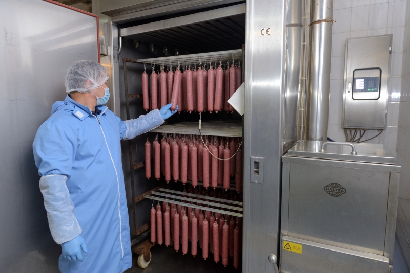 Биз жаңы эттен жасалган 150дөн ашык колбаса жана деликатес түрлөрүн, адал стандарттарын так сактоо менен чыгарабыз Halal.